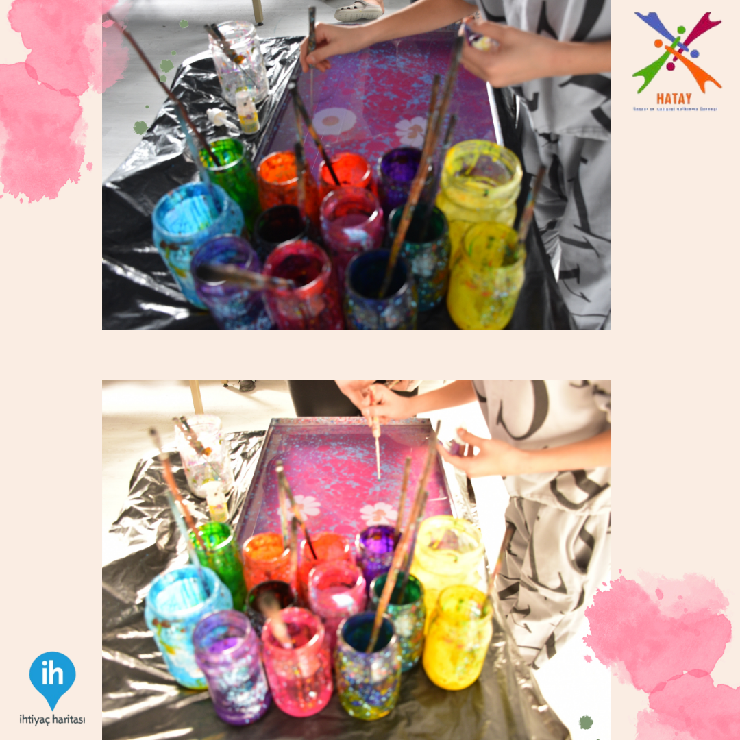 İhtiyaç Haritası ile birlikte çocukların ebru sanatı ile yapmış olduğu etkinliklerden kareler...